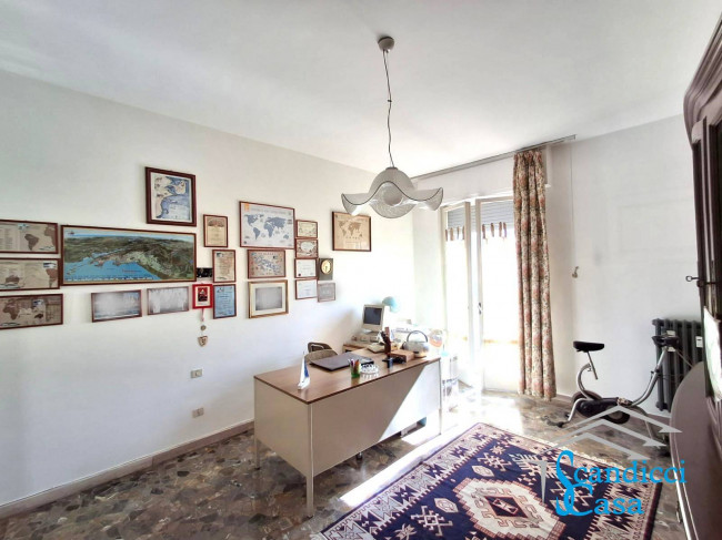 Entrando nel grande ingresso sulla sinistra si apre il soggiorno, a destra la cucina abitabile, nel reparto notte troviamo due camere da letto matrimoniali molto grandi ed ambedue con balcone, ripostiglio e servizio finestrato.