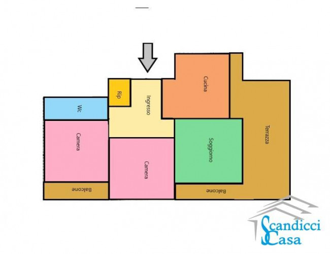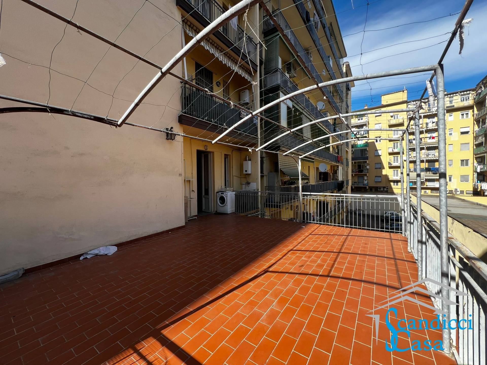 L'immobile è composto da ingresso, tinello con cucinotto con accesso alla grande e comoda TERRAZZA abitabile, soggiorno con balcone, divisione giorno/notte con due camere da letto matrimoniali una delle quali con ulteriore balcone, servizio igienico finestrato, ripostiglio.