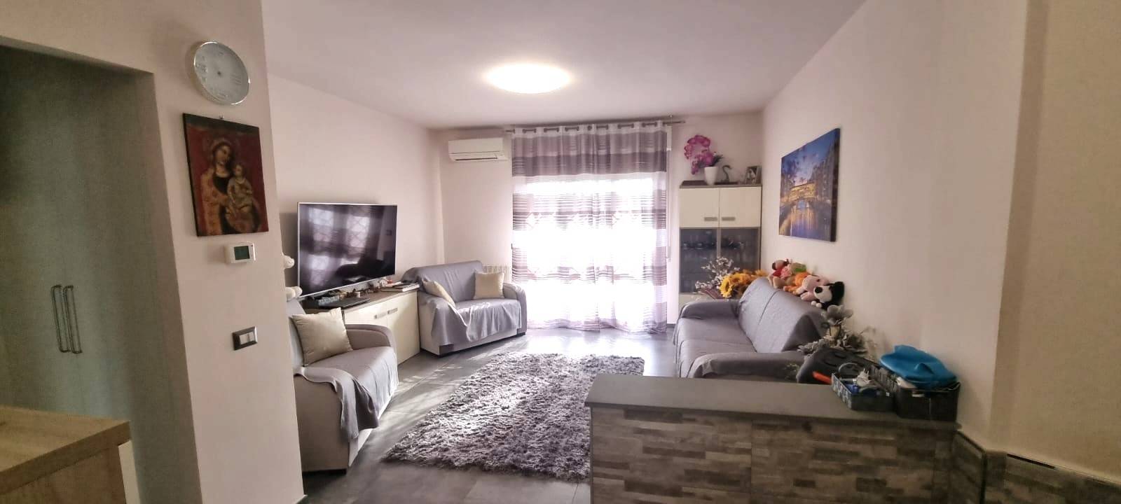 Appartamento ristrutturato recentemente, composto da ingresso, cucina abitabile con balcone, soggiorno con ulteriore balcone, due camere da letto matrimoniali di cui una con affaccio sul balcone, servizio finestrato. Posto auto e giardino staccato dall'Appartamento.